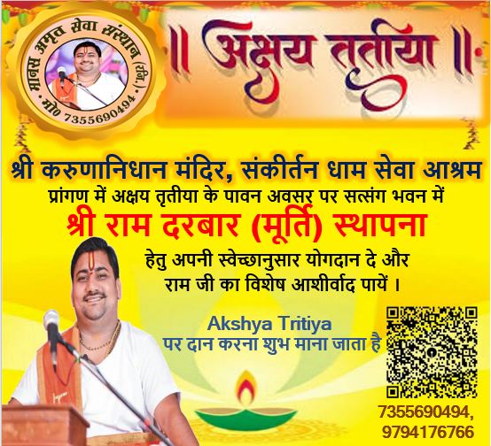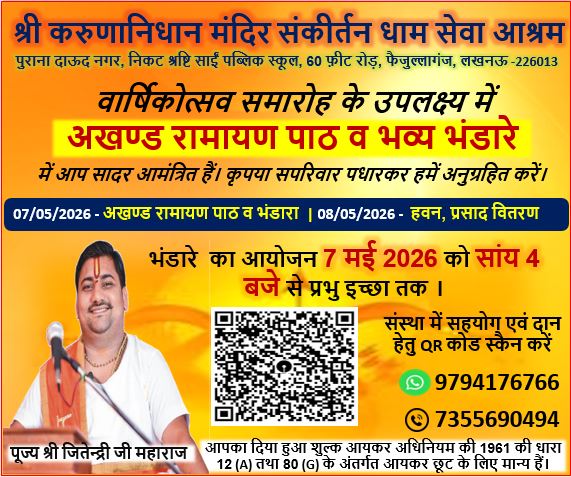 जो भी भक्त श्री मानस अमृत राम कथा के यजमान बनना चाहते हों या किसी भी प्रकार का कोई सहयोग करने की इच्छा रखते हों वह हमारी संस्था की दी गई वेबसाइट लिंक को ओपन कर सहयोग कर सकते हैं या हमारे दिए हुए नंबरों पर संपर्क कर सकते हैं ।